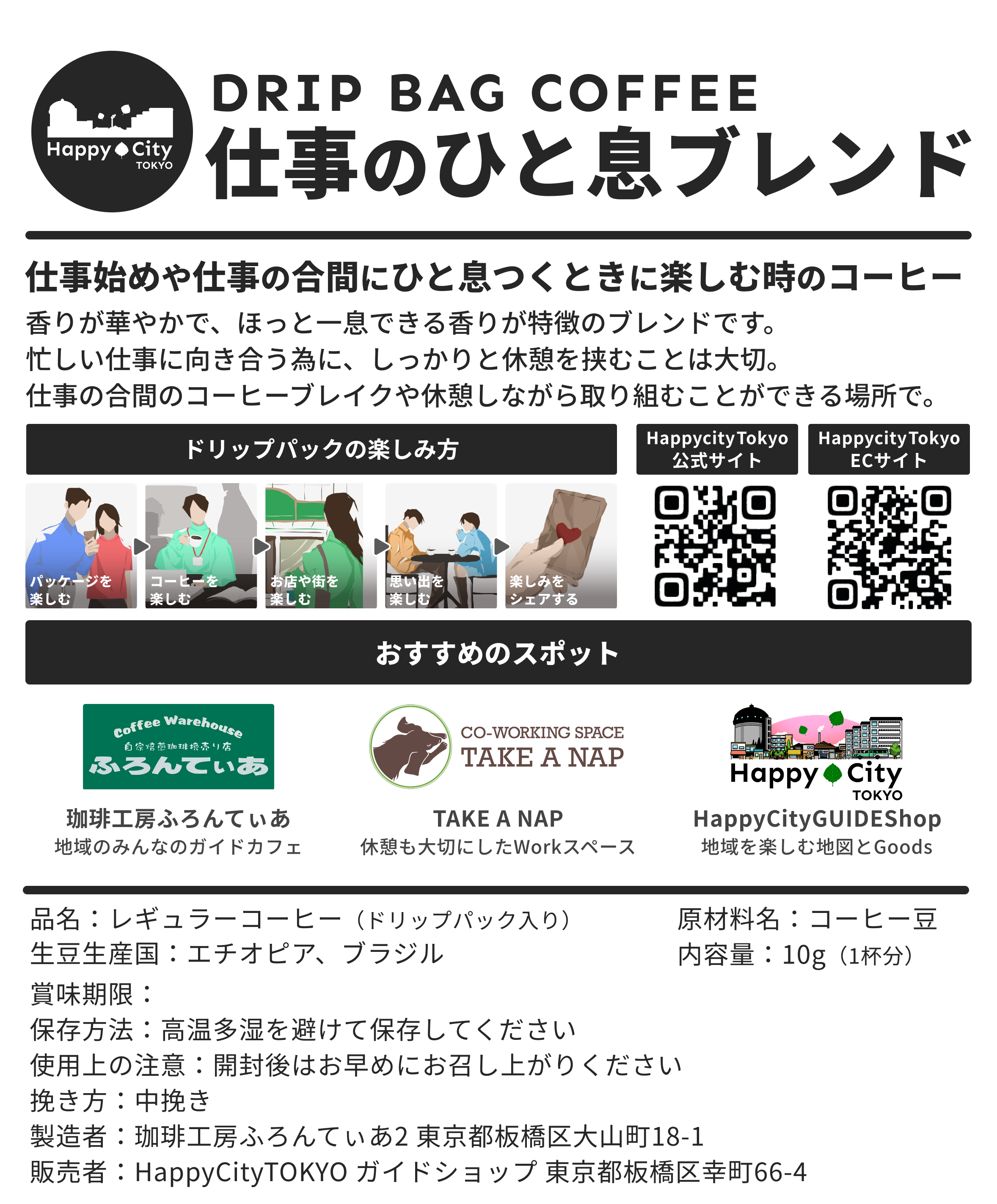 ・HappyCityTokyoとコラボしたオリジナルブレンドのコーヒードリップパックです。