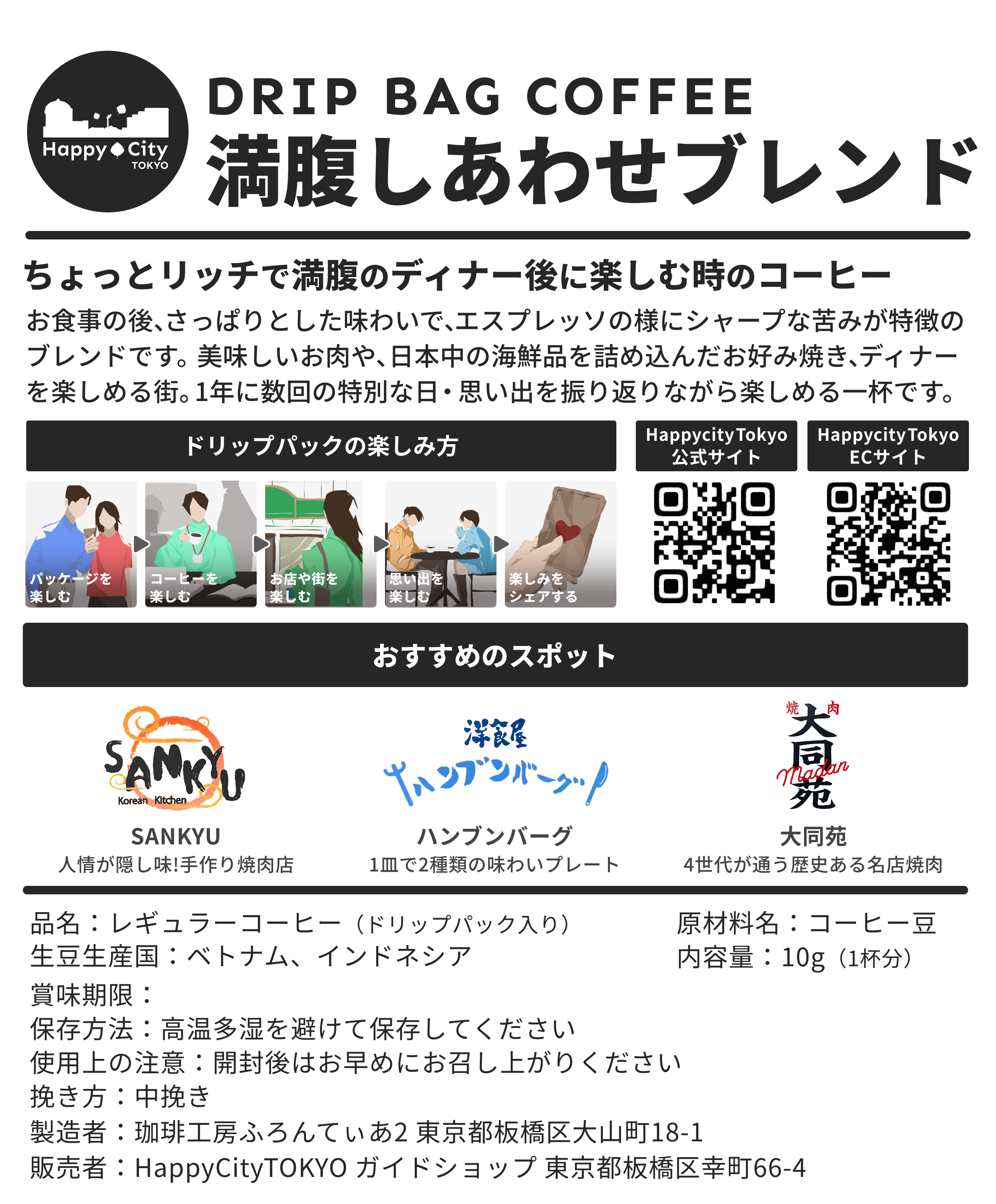 ・HappyCityTokyoとコラボしたオリジナルブレンドのコーヒードリップパックです。